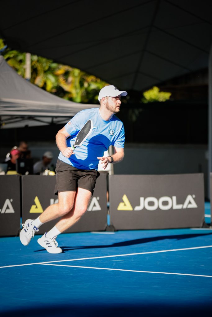 The sport was fundamentally different in those early days. “We were playing with wooden paddles or paddles with no grit. Maybe honeycomb was just coming into the sport. That’s when you could just dink all day, which was my whole game style. I came back to Melbourne basically the number one Australian — I’m still claiming that today,” he adds with a laugh.