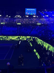 The court surface played… meh. Similar to a pickle roll in terms of occasional dead spots and bad bounces. I did hear that the surface underneath wasn’t perfect and there may have been dew on the ground when laying the courts, but all in all, for a court that was completely transformed in seven hours overnight, it was impressive.